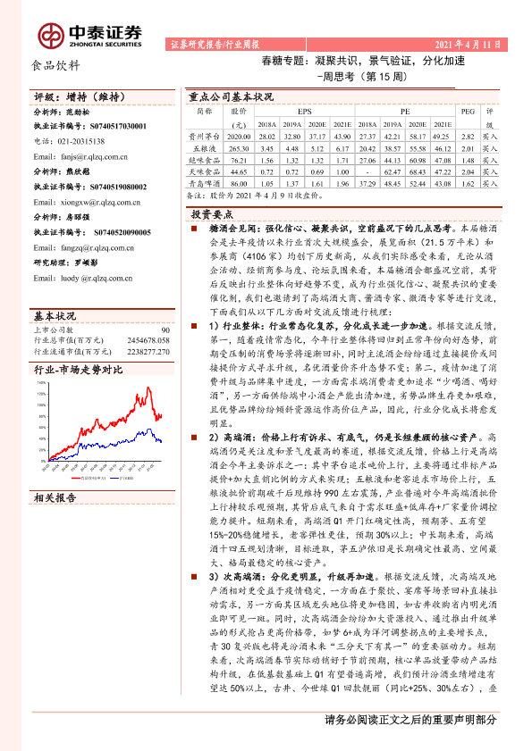 【中泰证券】【20210411】20210411-中泰证券-食品饮料周思考(第15周):春糖专题:凝聚共识,景气验证,分化加速-7页