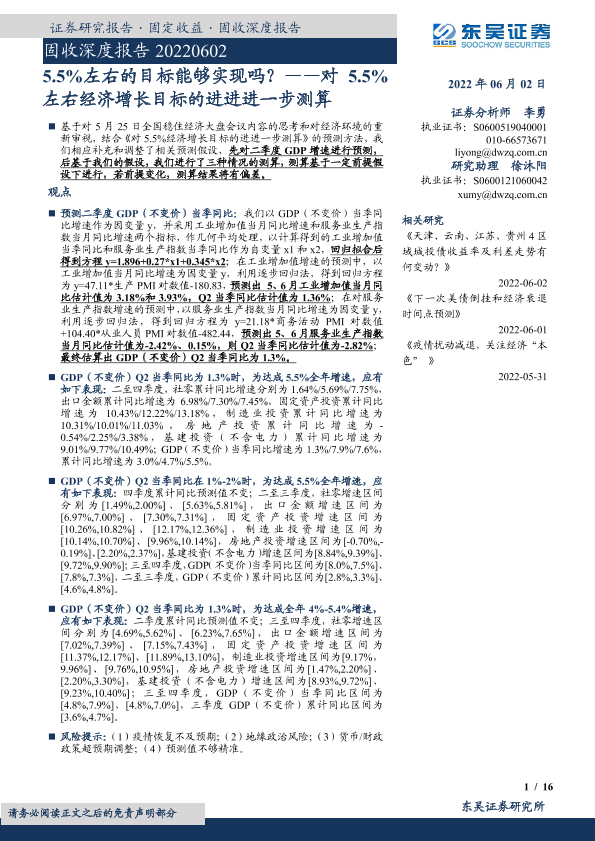 【东吴证券】【20220602】对5.5%左右经济增长目标的进一步测算,5.5%左右的目标能够实现吗?-16页