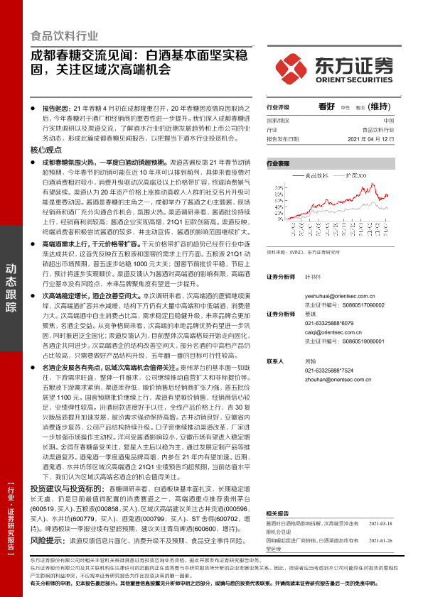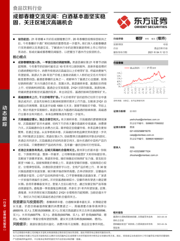 【东方证券】【20210412】食品饮料行业:成都春糖交流见闻:白酒基本面坚实稳固,关注区域次高端机会-15页