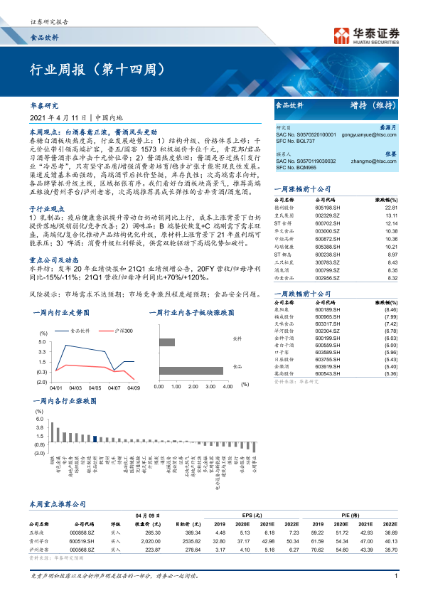 【华泰证券】【20210411】20210411-华泰证券-食品饮料行业周报(第十四周)-12页