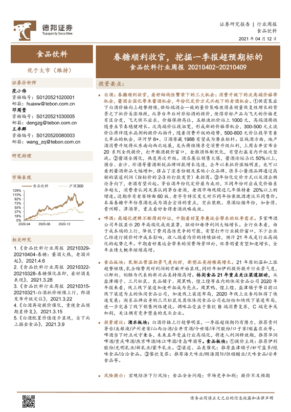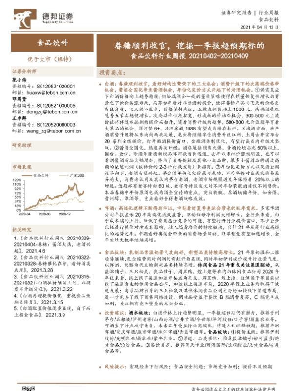 【德邦证券】【20210412】食品饮料行业周报:春糖顺利收官,挖掘一季报超预期标的-17页
