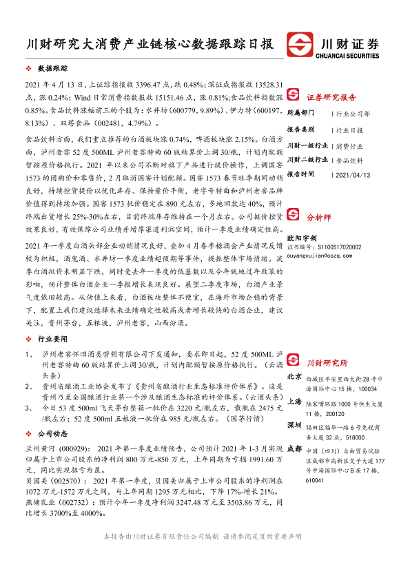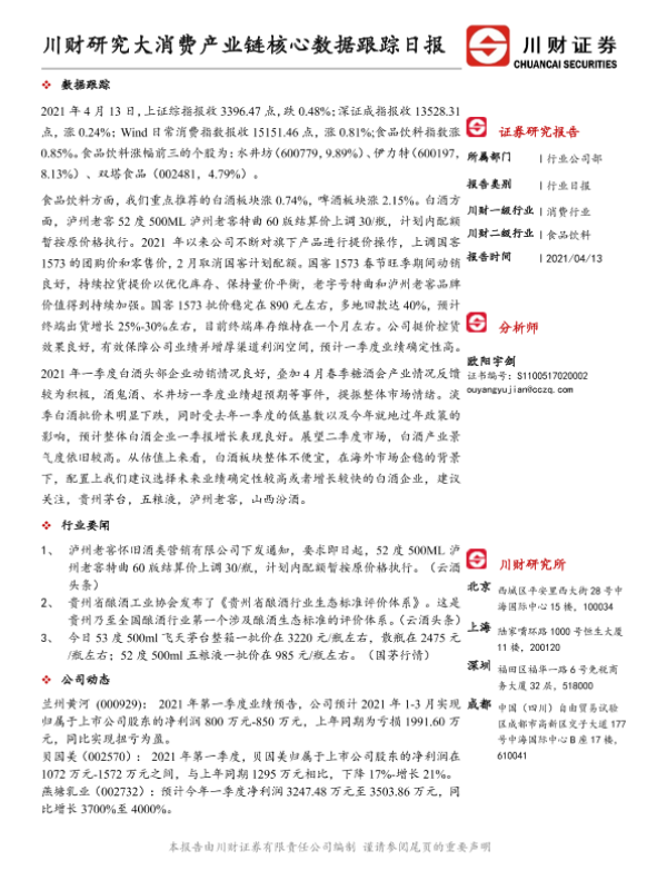 【川财证券】【20210413】大消费产业链核心数据跟踪日报-4页