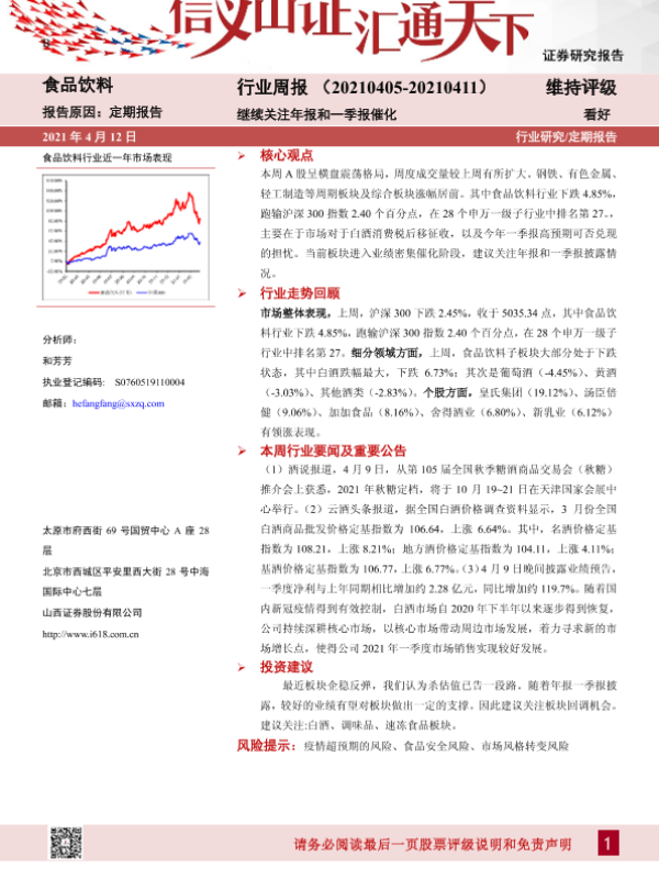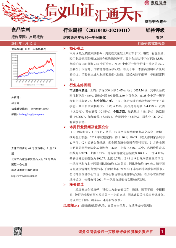 【山西证券】【20210412】20210412-山西证券-食品饮料行业周报:继续关注年报和一季报催化-10页