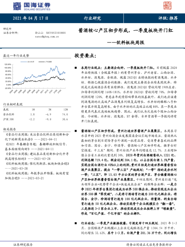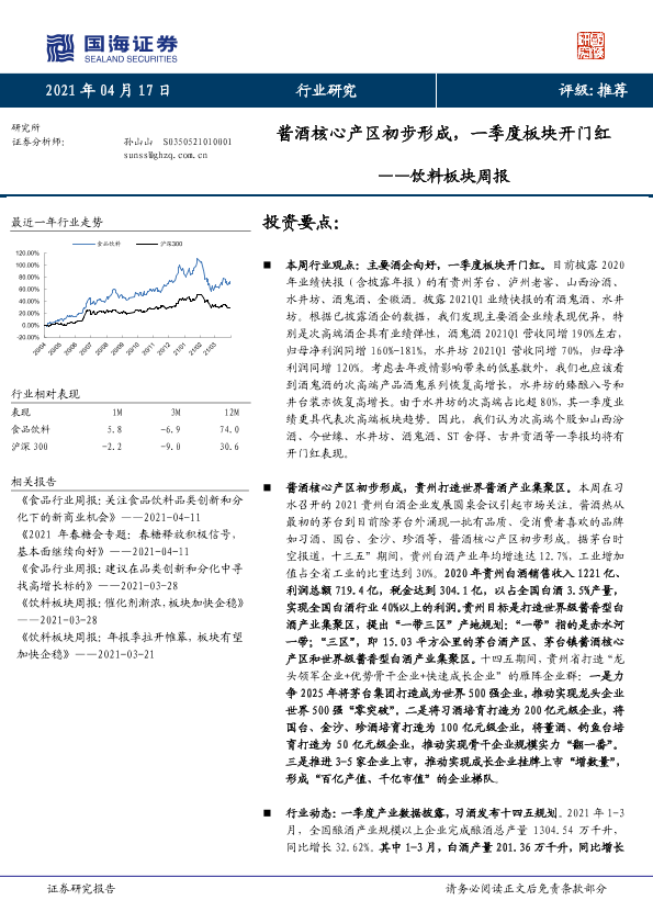 【国海证券】【20210417】20210417-国海证券-饮料板块周报:酱酒核心产区初步形成,一季度板块开门红-15页