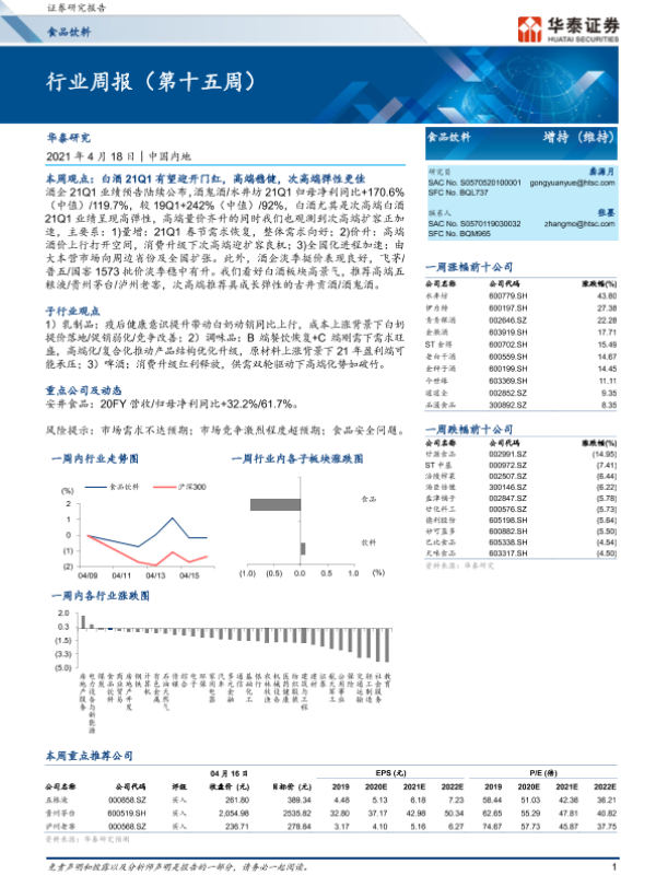 【华泰证券】【20210418】20210418-华泰证券-食品饮料行业周报(第十五周)-15页