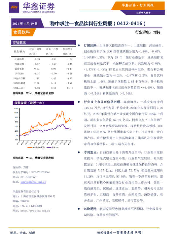【华鑫证券】【20210419】20210419-华鑫证券-食品饮料行业周报:稳中求胜-12页