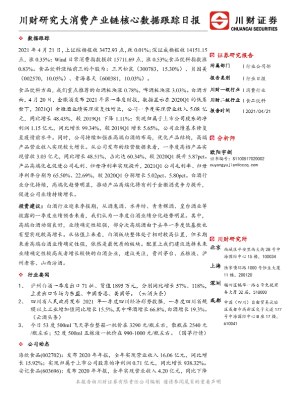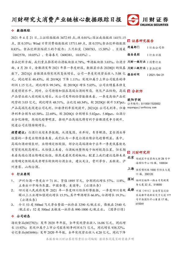 【川财证券】【20210421】川财研究大消费产业链核心数据跟踪日报-4页