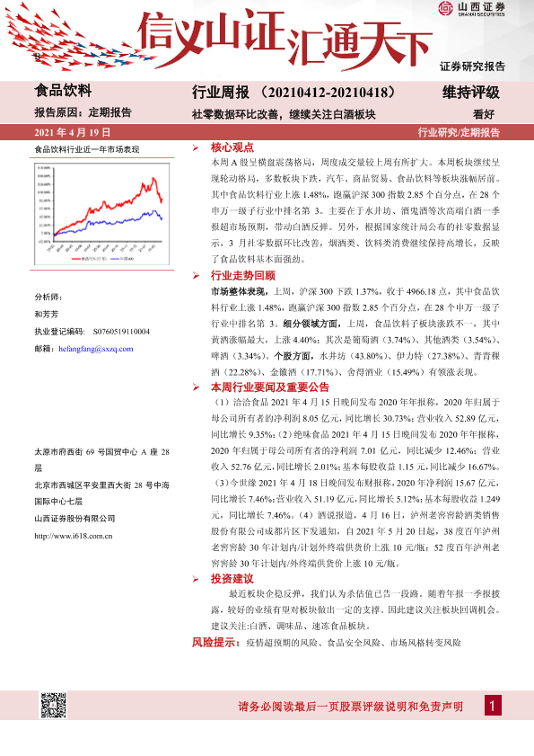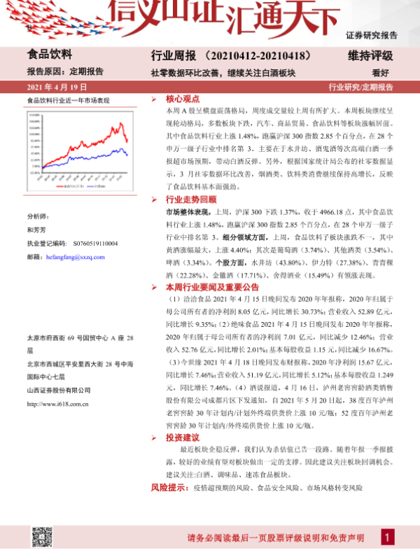 【山西证券】【20210419】20210419-山西证券-食品饮料行业周报:社零数据环比改善,继续关注白酒板块-10页