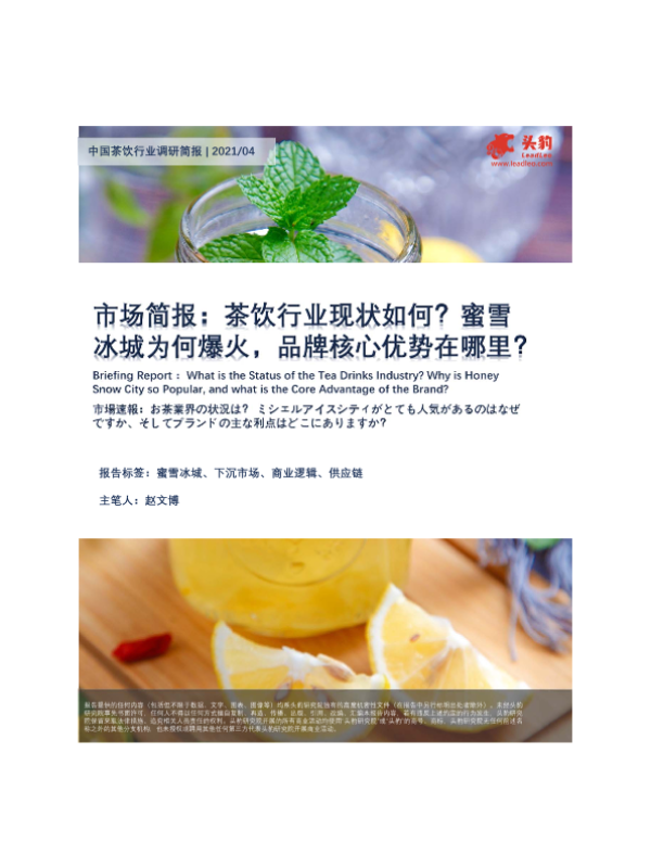 【头豹研究院】【202104】中国茶饮行业调研简报:茶饮行业现状如何?蜜雪冰城为何爆火,品牌核心优势在哪里?-12页