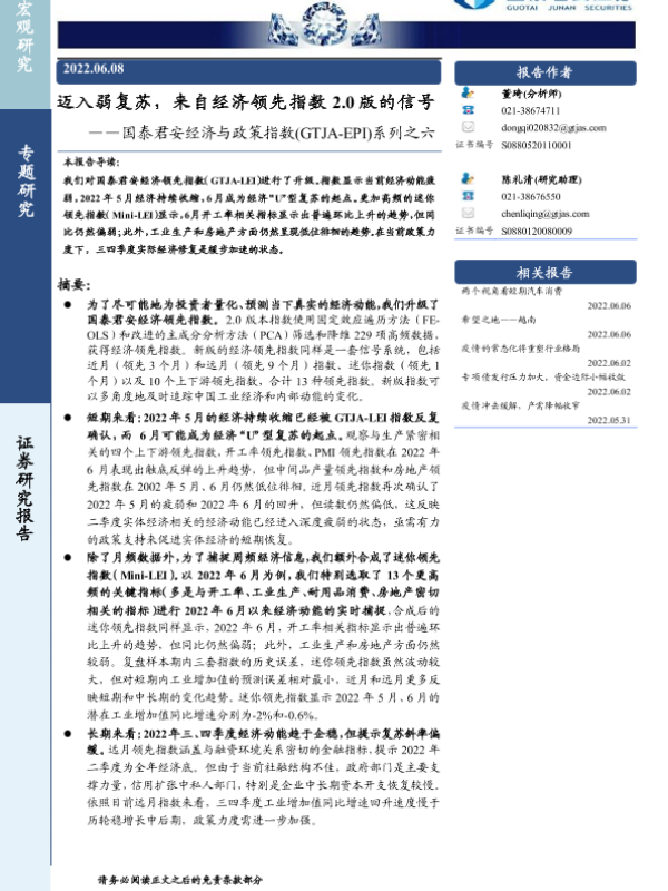【国泰君安证券】【20220608】迈入弱复苏,来自经济领先指数2.0版的信号-18页