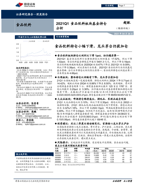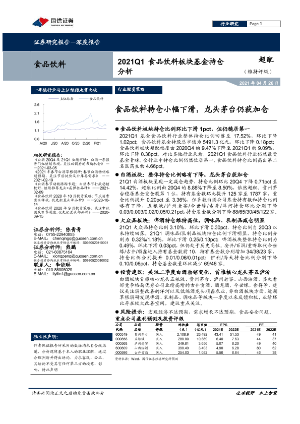 【国信证券】【20210426】2021Q1食品饮料板块基金持仓分析:食品饮料持仓小幅下滑,龙头茅台仍获加仓-15页