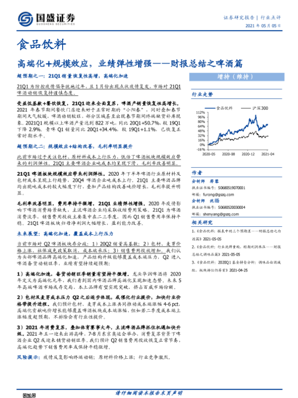 【国盛证券】【20210505】食品饮料财报总结之啤酒篇:高端化+规模效应,业绩弹性增强-7页