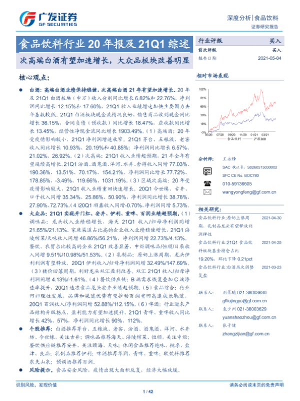 【广发证券】【20210504】食品饮料行业20年报及21Q1综述:次高端白酒有望加速增长,大众品板块改善明显-42页