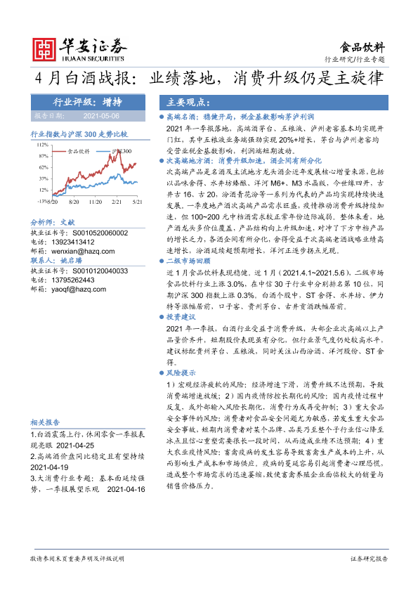 【华安证券】【20210506】4月白酒战报:业绩落地,消费升级仍是主旋律-17页