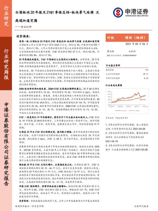 【申港证券】【20210506】白酒板块20年报及21Q1季报总结-板块景气延续次高端加速突围-14页