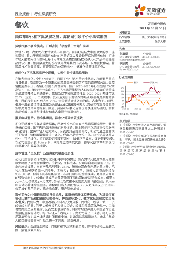 【天风证券】【20210506】餐饮行业:顺应年轻化和下沉发展之势,海伦司引领平价小酒馆潮流-32页