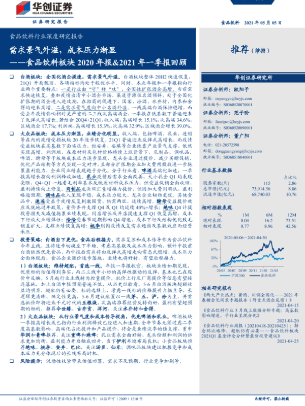 【华创证券】【20210505】食品饮料行业深度研究报告:食品饮料板块2020年报&2021年一季报回顾:需求景气外溢,成本压力渐显-23页