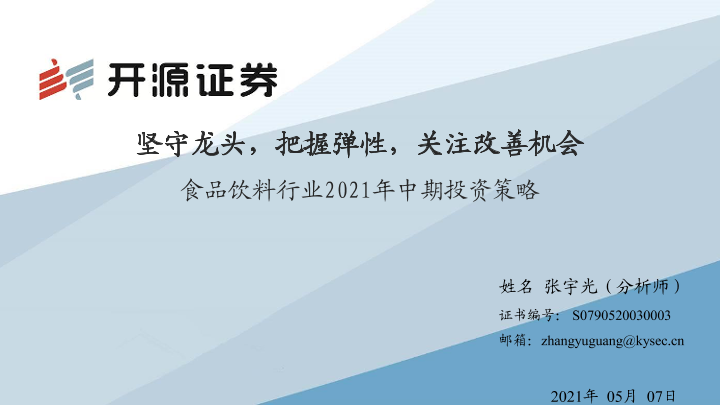 【开源证券】【20210507】食品饮料行业2021年中期投资策略:坚守龙头,把握弹性,关注改善机会-31页