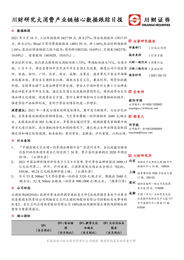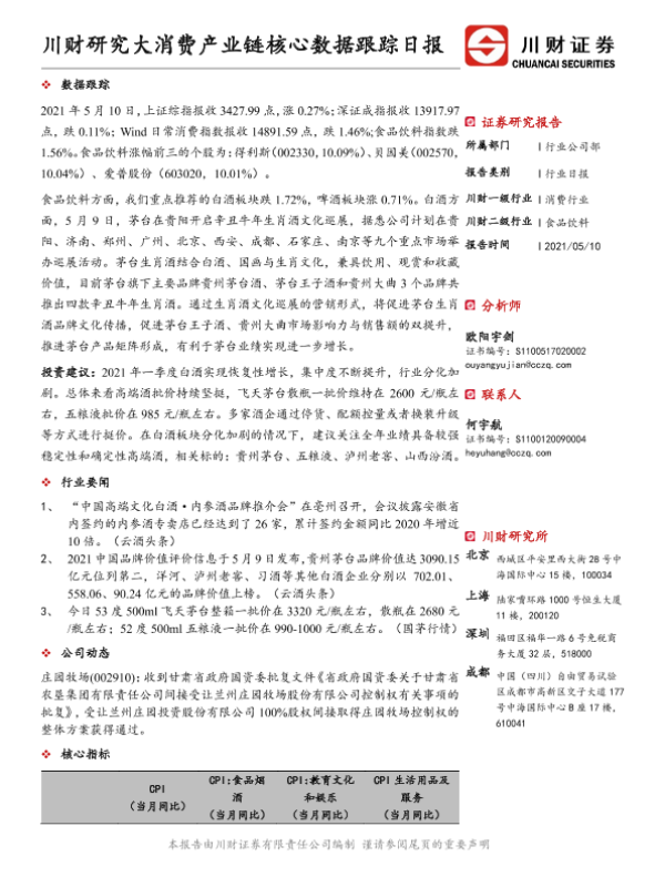 【川财证券】【20210510】川财研究大消费产业链核心数据跟踪日报-4页