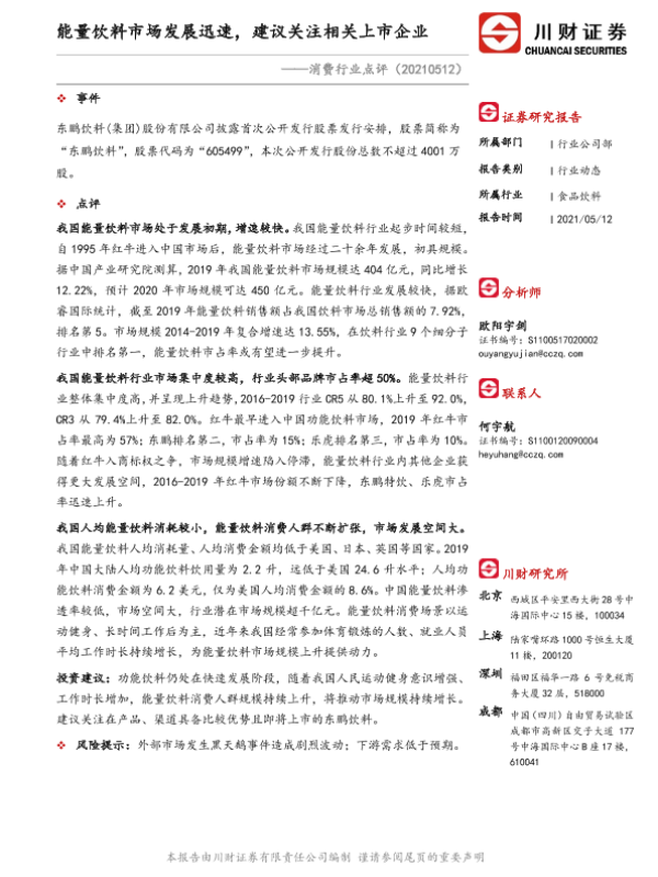 【川财证券】【20210512】消费行业点评:能量饮料市场发展迅速,建议关注相关上市企业-2页