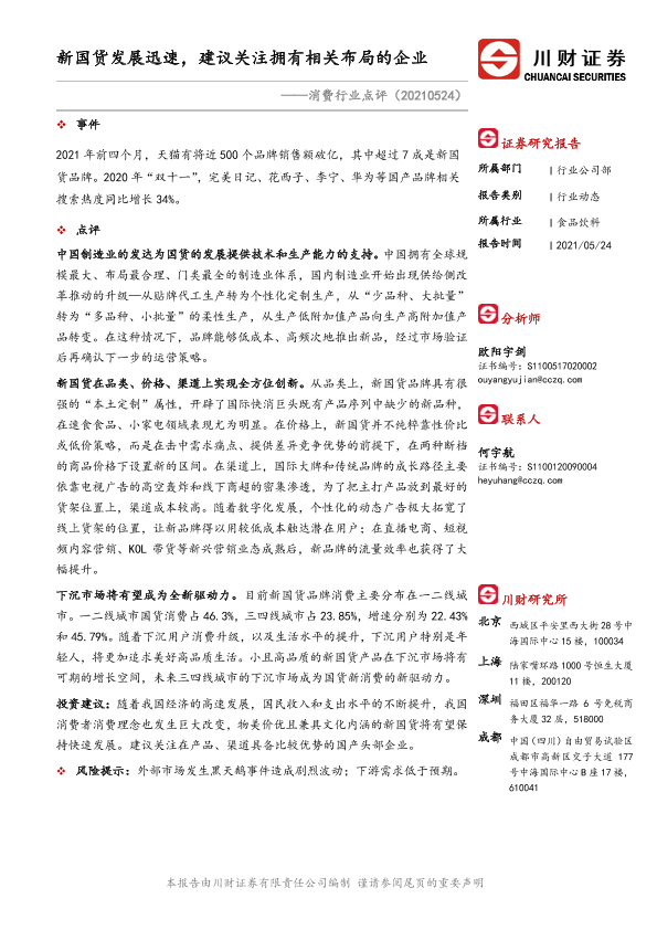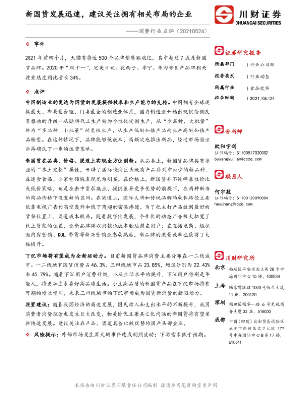 【川财证券】【20210524】消费行业点评:新国货发展迅速,建议关注拥有相关布局的企业-2页