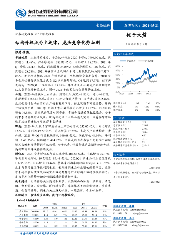 【东北证券】【20210521】食品饮料行业深度报告:结构升级成为主旋律,龙头竞争优势加剧-45页