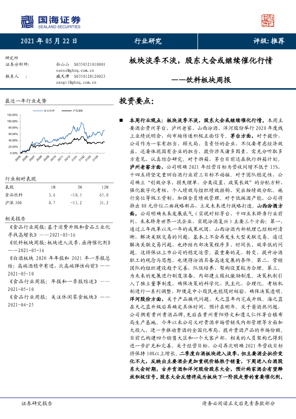 【国海证券】【20210522】饮料板块周报:板块淡季不淡,股东大会或继续催化行情-17页