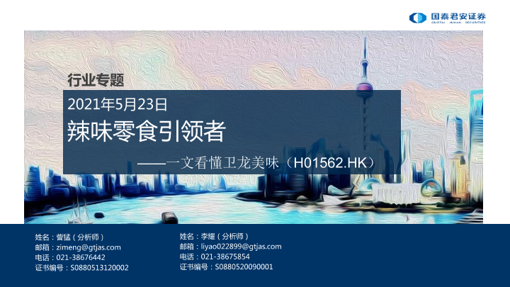 【国泰君安证券】【20210523】20210523-国泰君安-食品饮料行业专题:一文看懂卫龙美味-辣味零食引领者-16页