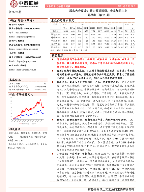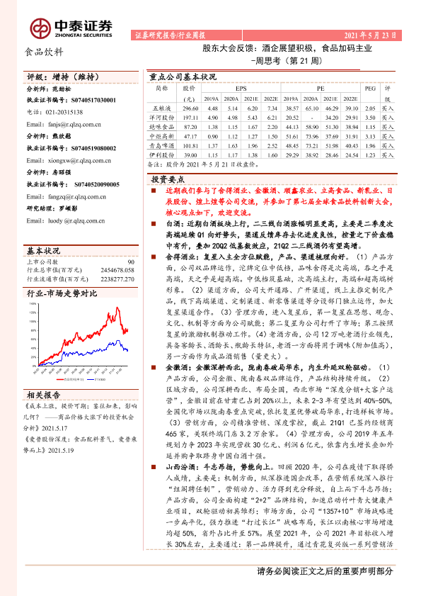 【中泰证券】【20210523】20210523-中泰证券-食品饮料行业周报周思考(第21周):股东大会反馈:酒企展望积极,食品加码主业-9页