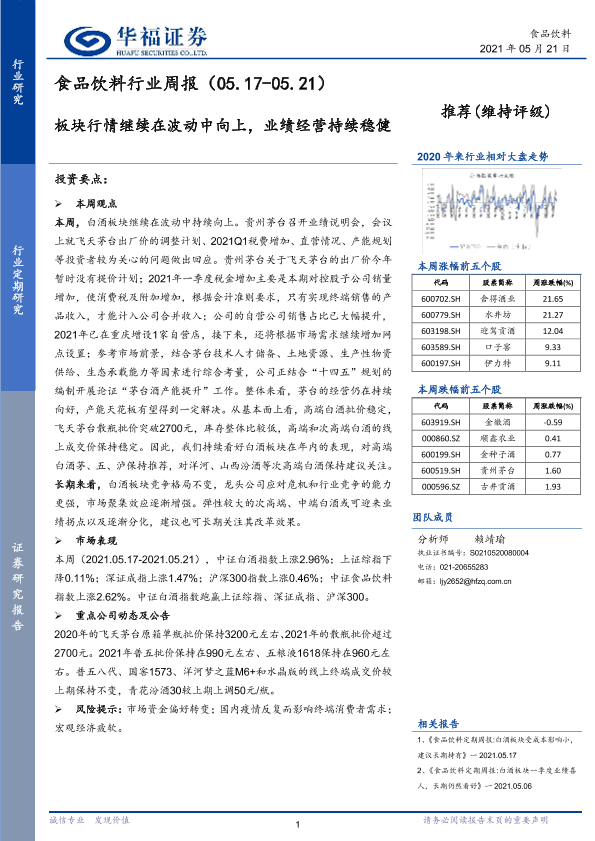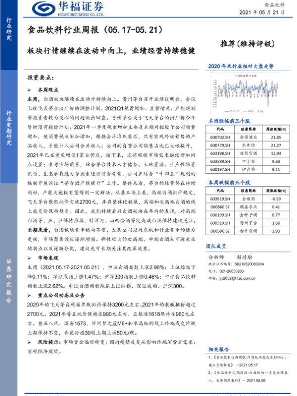 【华福证券】【20210521】食品饮料行业周报:板块行情继续在波动中向上,业绩经营持续稳健-7页