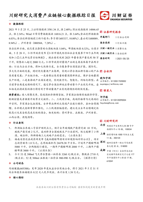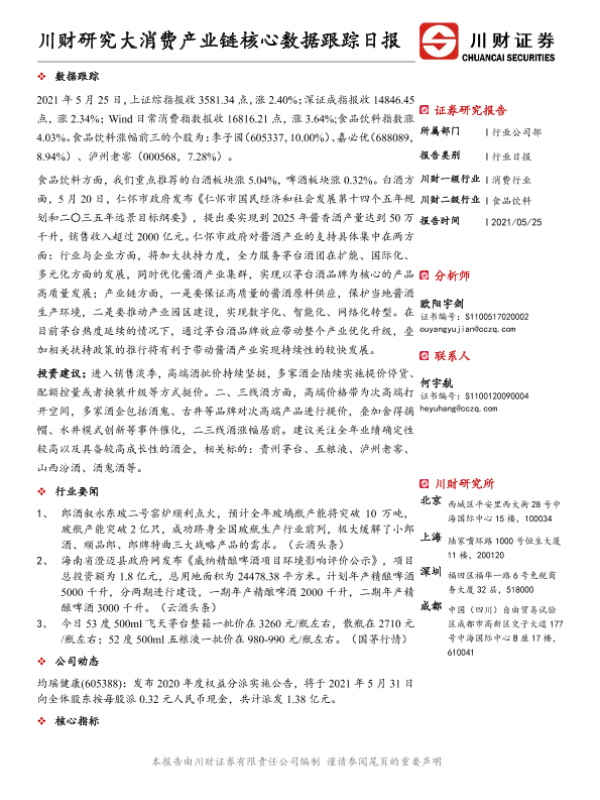【川财证券】【20210525】食品饮料行业日报:川财研究大消费产业链核心数据跟踪日报-4页