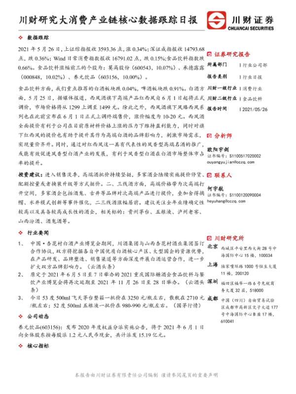 【川财证券】【20210526】川财研究大消费产业链核心数据跟踪日报-4页