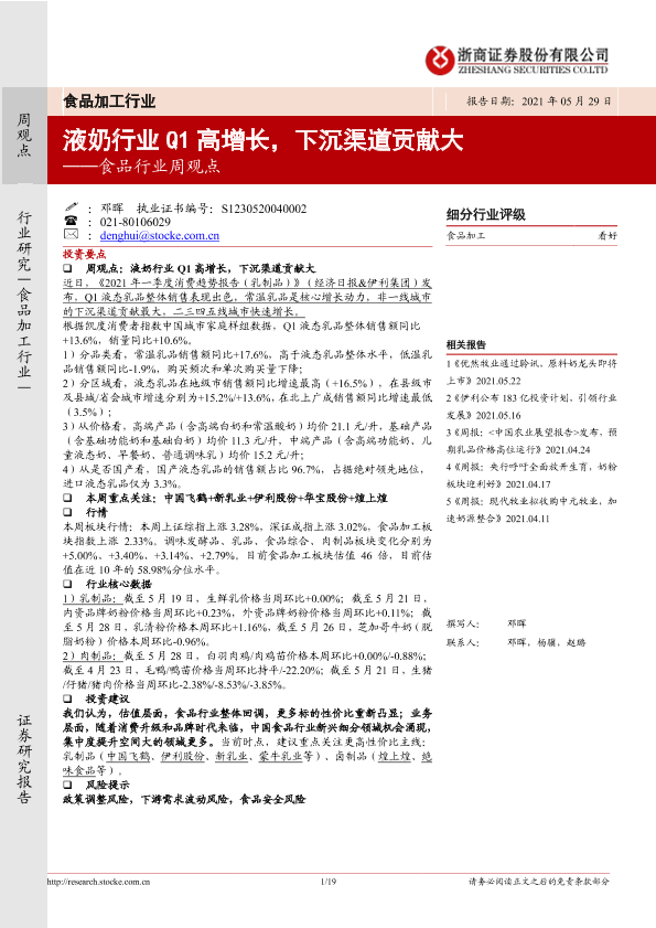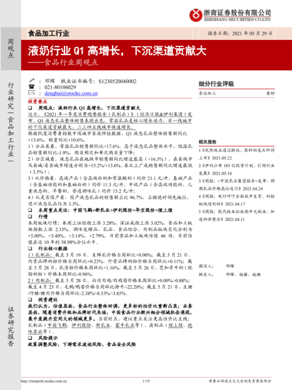 【浙商证券】【20210529】20210529-浙商证券-食品行业周观点:液奶行业 Q1 高增长,下沉渠道贡献大-19页
