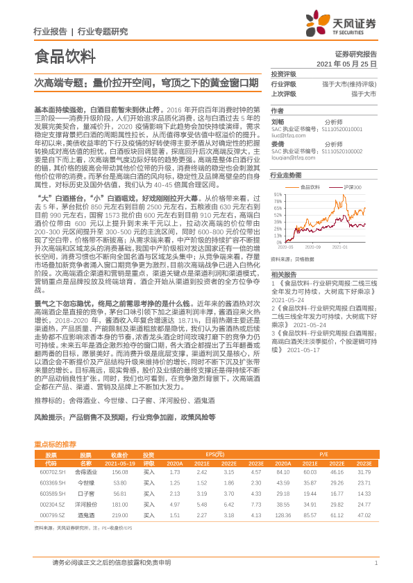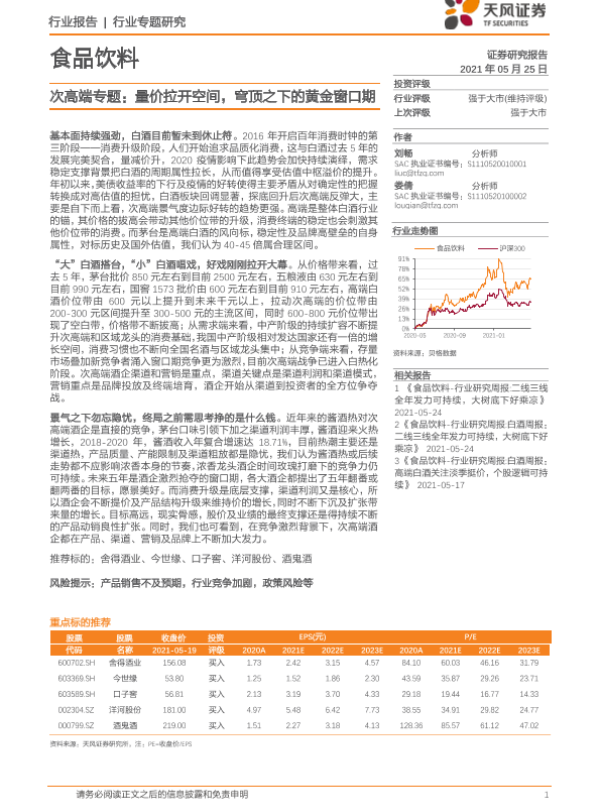 【天风证券】【20210525】食品饮料:次高端专题:量价拉开空间,穹顶之下的黄金窗口期-20页