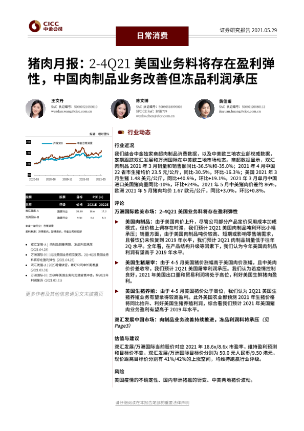 【中金公司】【20210529】2-4Q21美国业务料将存在盈利弹性,中国肉制品业务改善但冻品利润承压-17页