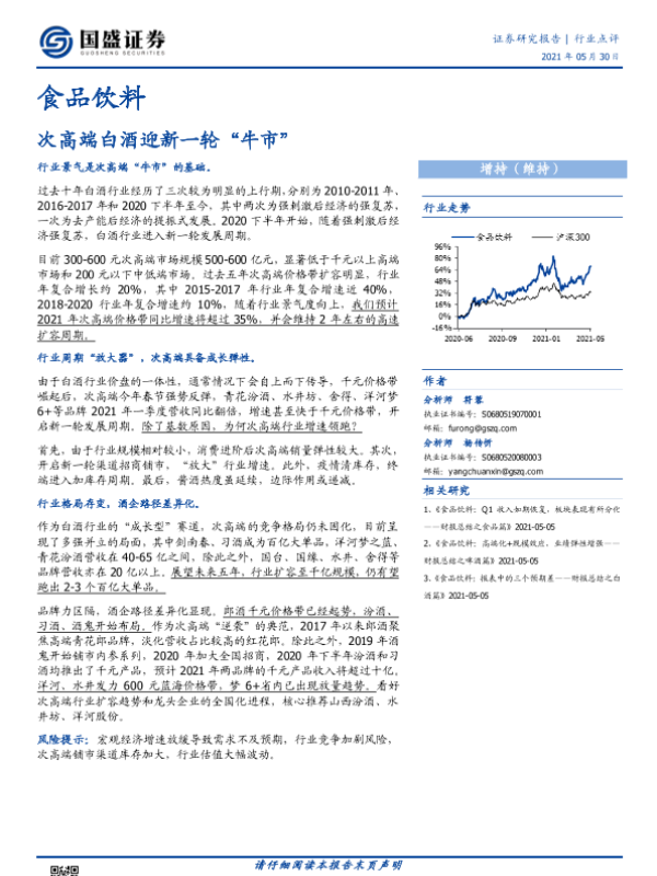 【国盛证券】【20210530】食品饮料行业点评:次高端白酒迎新一轮“牛市”-7页