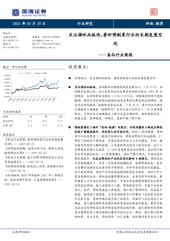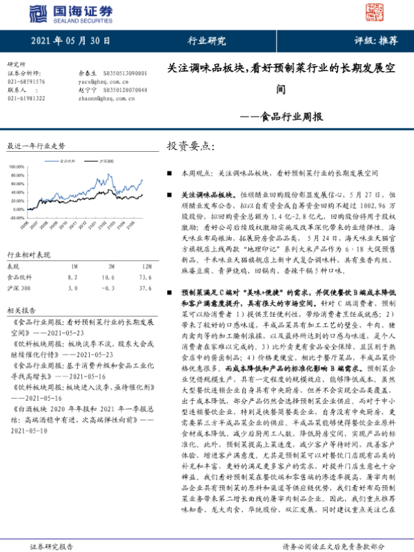 【国海证券】【20210530】20210530-国海证券-食品行业周报:关注调味品板块,看好预制菜行业的长期发展空间-17页