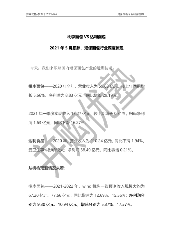 【并购优塾】【20210602】桃李面包VS达利面包:2021年5月跟踪,短保面包行业深度梳理-22页