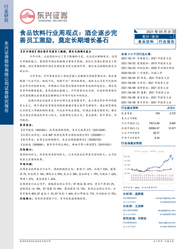 【东兴证券】【20210531】食品饮料行业周观点:酒企逐步完善员工激励,奠定长期增长基石-8页