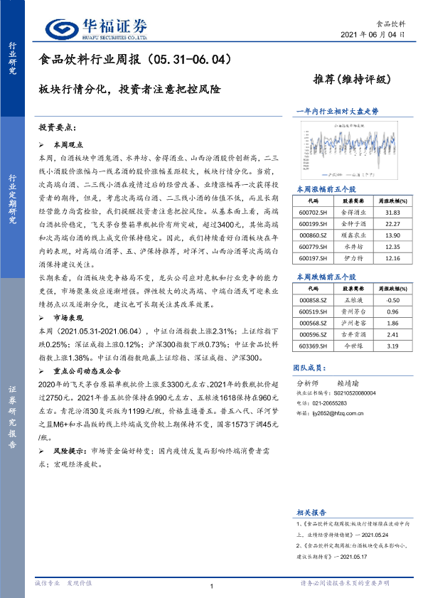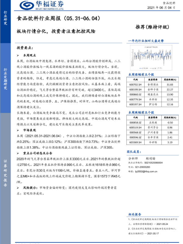 【华福证券】【20210604】食品饮料行业周报:板块行情分化,投资者注意把控风险-7页