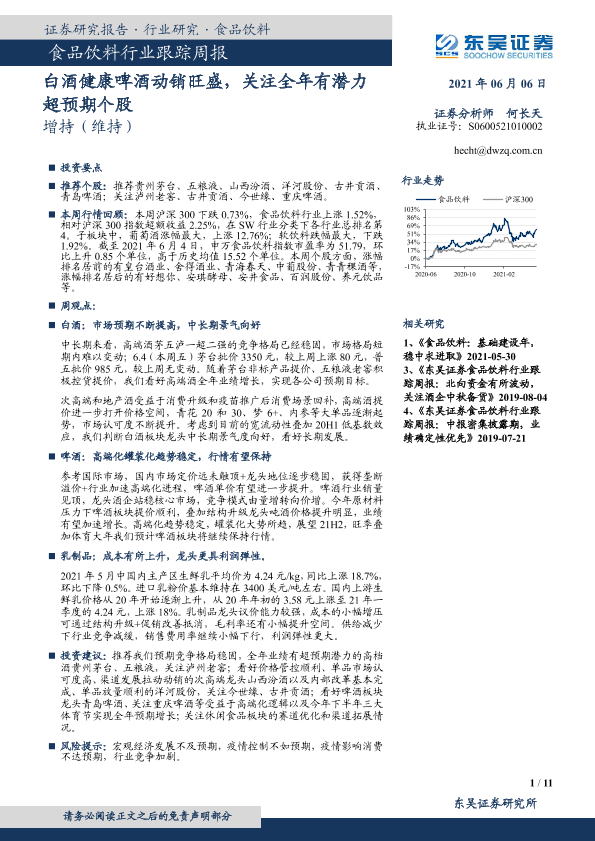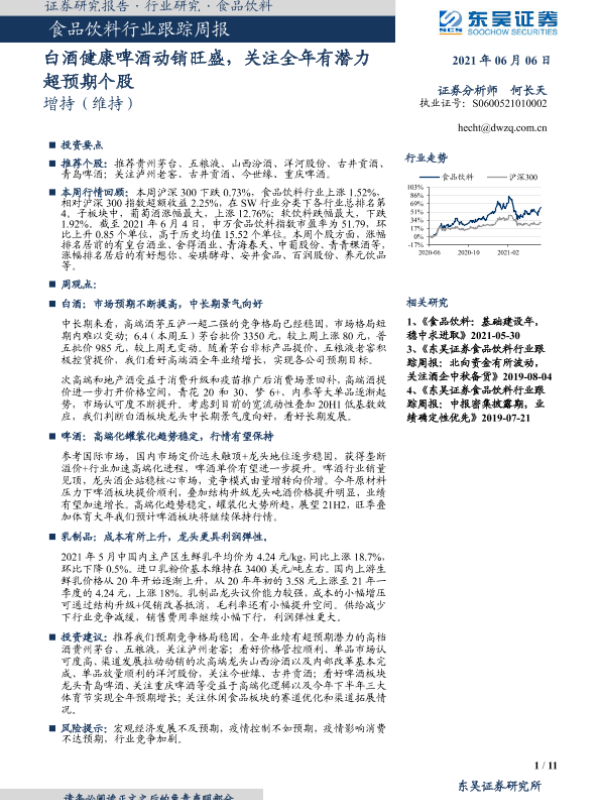 【东吴证券】【20210606】食品饮料行业跟踪周报:白酒健康啤酒动销旺盛,关注全年有潜力超预期个股-11页