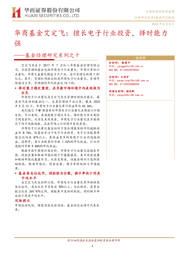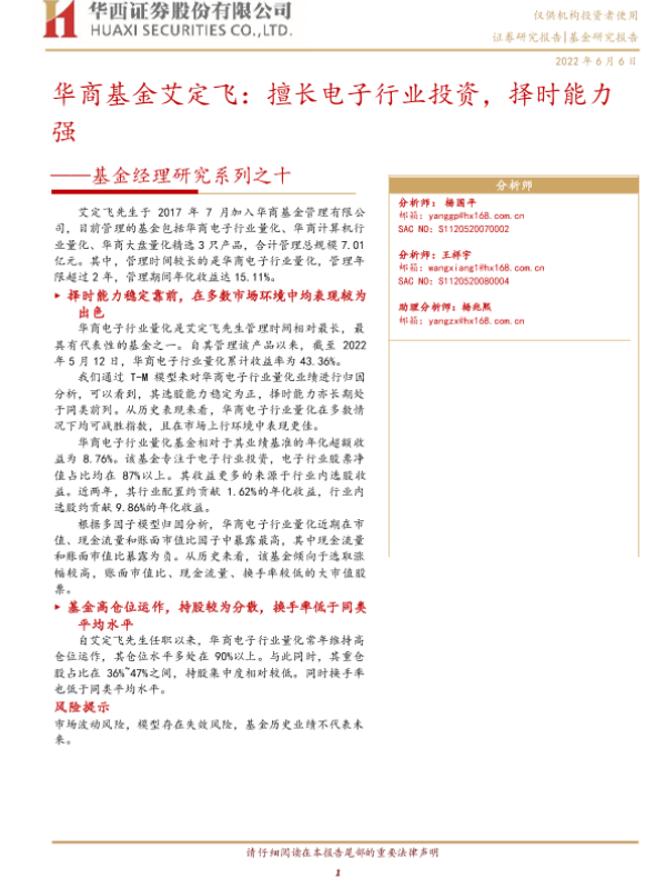 【华西证券】【20220606】基金经理研究系列之十:华商基金艾定飞,擅长电子行业投资,择时能力强-15页