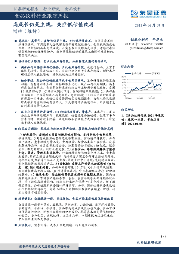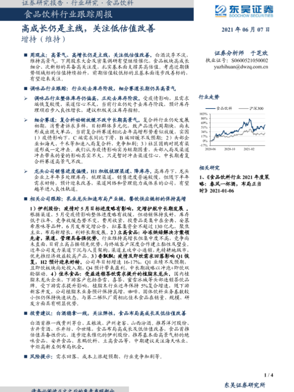 【东吴证券】【20210607】食品饮料行业跟踪周报:高成长仍是主线,关注低估值改善-4页