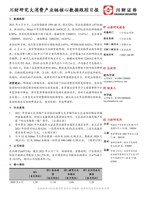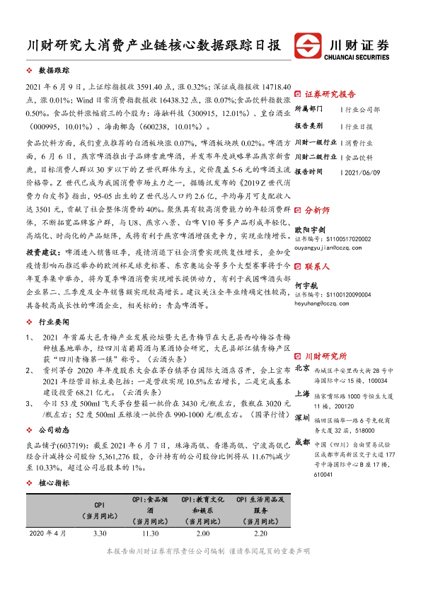 【川财证券】【20210609】20210609-川财证券-大消费产业链核心数据跟踪日报-4页