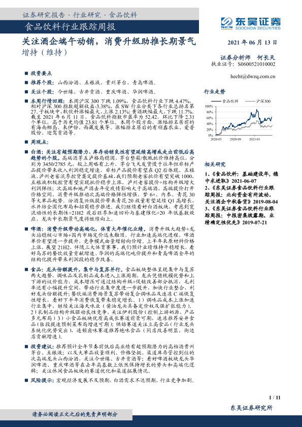 【东吴证券】【20210613】食品饮料行业跟踪周报:关注酒企端午动销,消费升级助推长期景气-11页