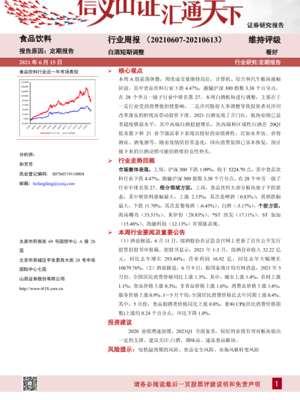 【山西证券】【20210615】20210615-山西证券-食品饮料行业周报:白酒短期调整-10页