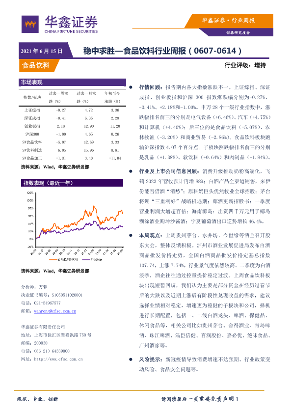 【华鑫证券】【20210615】20210615-华鑫证券-食品饮料行业周报:稳中求胜-16页