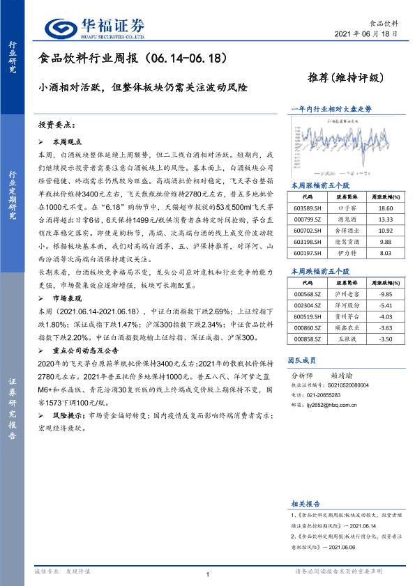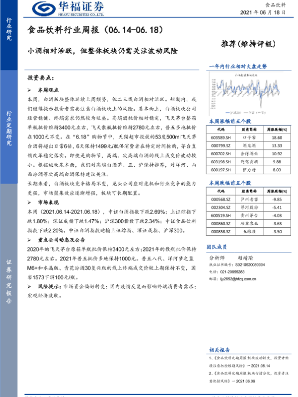 【华福证券】【20210618】食品饮料行业周报:小酒相对活跃,但整体板块仍需关注波动风险-7页