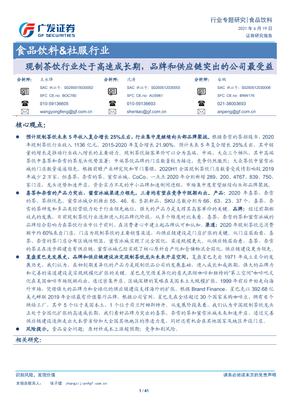 【广发证券】【20210619】现制茶饮行业处于高速成长期,品牌和供应链突出的公司最受益-41页