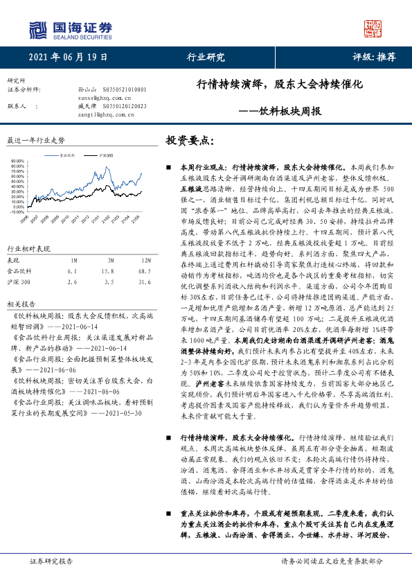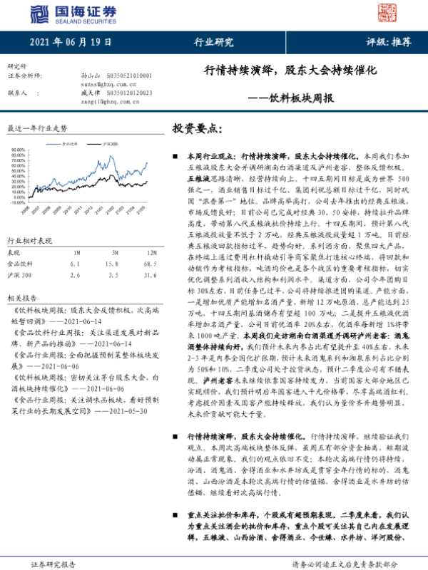 【国海证券】【20210619】20210619-国海证券-饮料板块周报:行情持续演绎,股东大会持续催化-17页